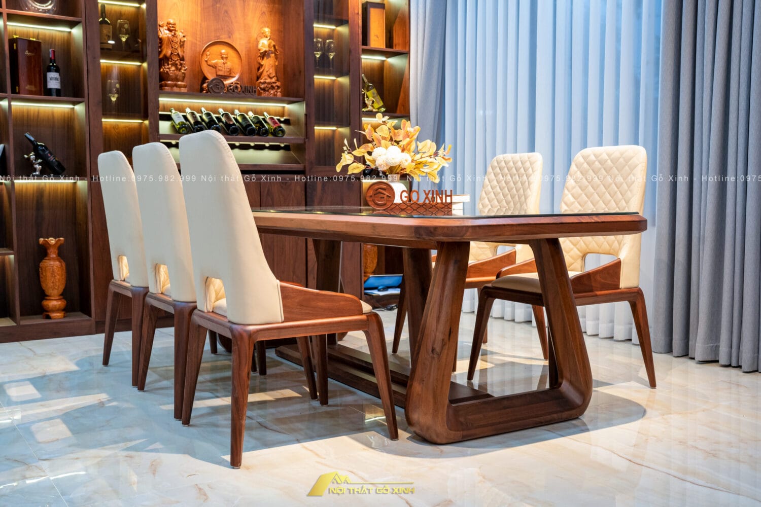Bộ bàn ăn gỗ óc chó Mosa IV
